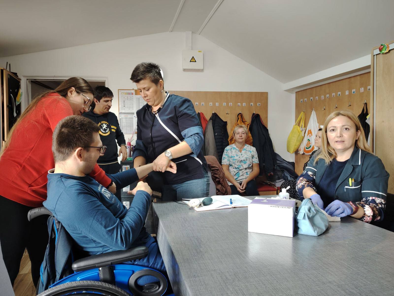 U prostoru Udruge Maslačak Križevci grupa članova, osoba s intelektualnim teškoćama, ovog je četvrtka imala posebno druženje s već dobro poznatim patronažnim sestrama, dvije Ivane, uz podršku medicinske sestre Natali. Njihov dolazak unio je dobru energiju i potaknuo Maslačke da hrabro provjere svoje zdravstveno stanje. Mjerenje šećera u krvi, kao i krvni tlak. Iznimno je važno je da osobe s intelektualnim teškoćama redovito mjere krvni tlak i kontroliraju šećer u krvi jer im to pomaže u očuvanju općeg zdravlja i prevenciji ozbiljnijih bolesti. Kod njih se često simptomi poput umora, žeđi ili glavobolje mogu teže prepoznati ili izraziti, pa je redovita kontrola ključna za rano otkrivanje problema poput povišenog tlaka ili dijabetesa.