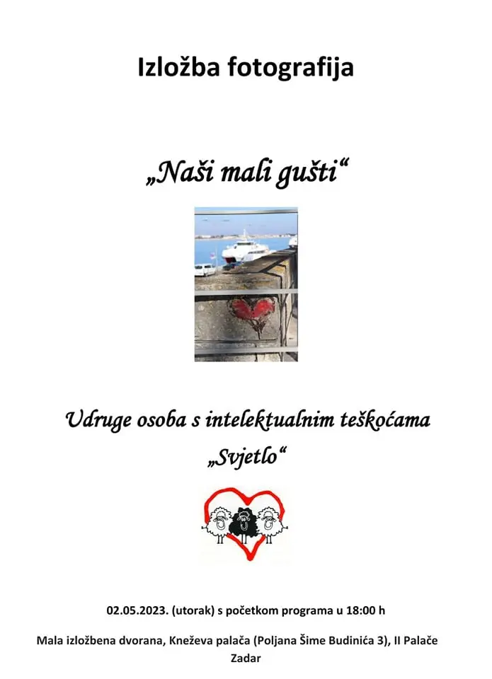 U utorak 2.5.2023., Udruga Svjetlo Zadar otvorila je izložbu fotografija svojih članova pod nazivom “Naši mali gušti”.