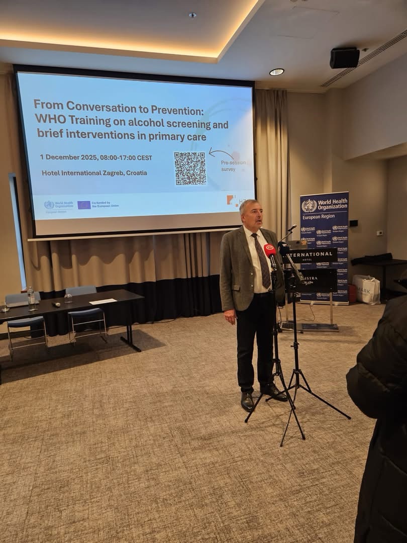 U Zagrebu je jučer održan trening „Od razgovora do prevencije: Trening SZO-a o probiru i kratkim intervencijama vezanim uz alkohol u primarnoj zdravstvenoj zaštiti“, u organizaciji Hrvatskog zavoda za javno zdravstvo (HZJZ) i Svjetske zdravstvene organizacije (WHO). Na treningu je sudjelovao i Ozren Catela, predsjednik Hrvatskog saveza udruga osoba s intelektualnim teškoćama.